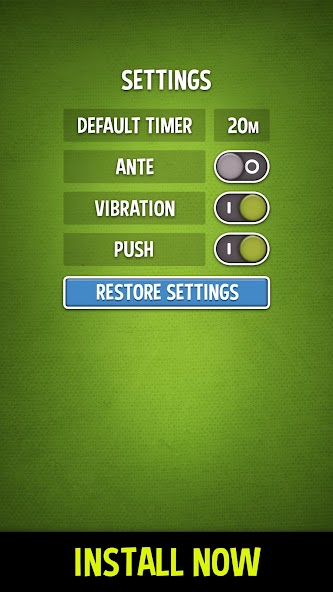 Dengan mudah mengatur putaran poker, waktu bulat, nilai poker buta dan taruhan dalam pengaturan khusus Anda.