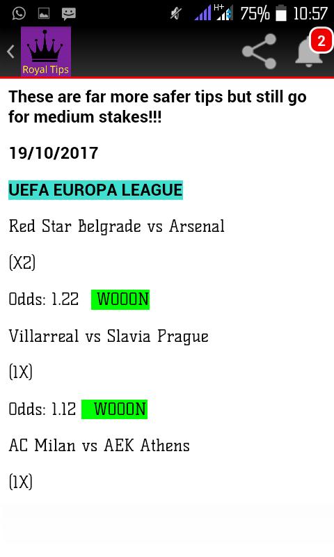 ROYAL TIPS memberikan tips yang jauh lebih aman untuk bertaruh untuk menjanjikan 5/7 per minggu. Kiat -kiatnya akan diposting setiap hari di 3+ GMT di semua bagian.