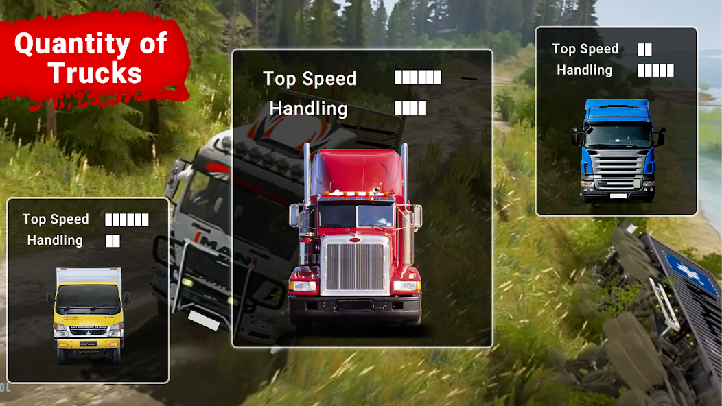Truk Simulator 3D di Highway Cargo Truck menggunakan kendaraan besar untuk mengangkut kargo untuk Basecamp Angkatan Darat. Heavy Truck Simulator menggunakan American Simulator untuk trek offroad dan permainan truk lumpur di trek 4x4.