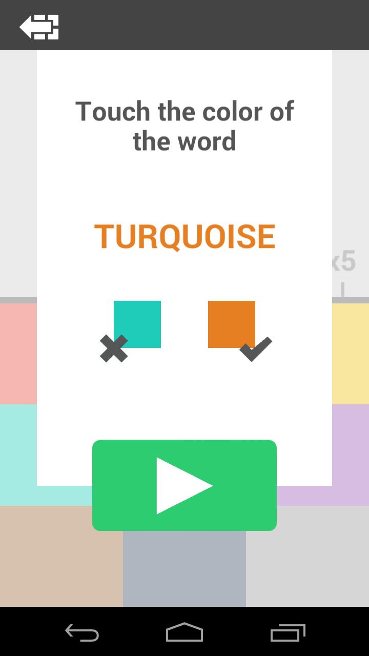 - Dalam mode ini, Anda harus menyentuh warna kata dan bukan warna yang ditunjuknya.