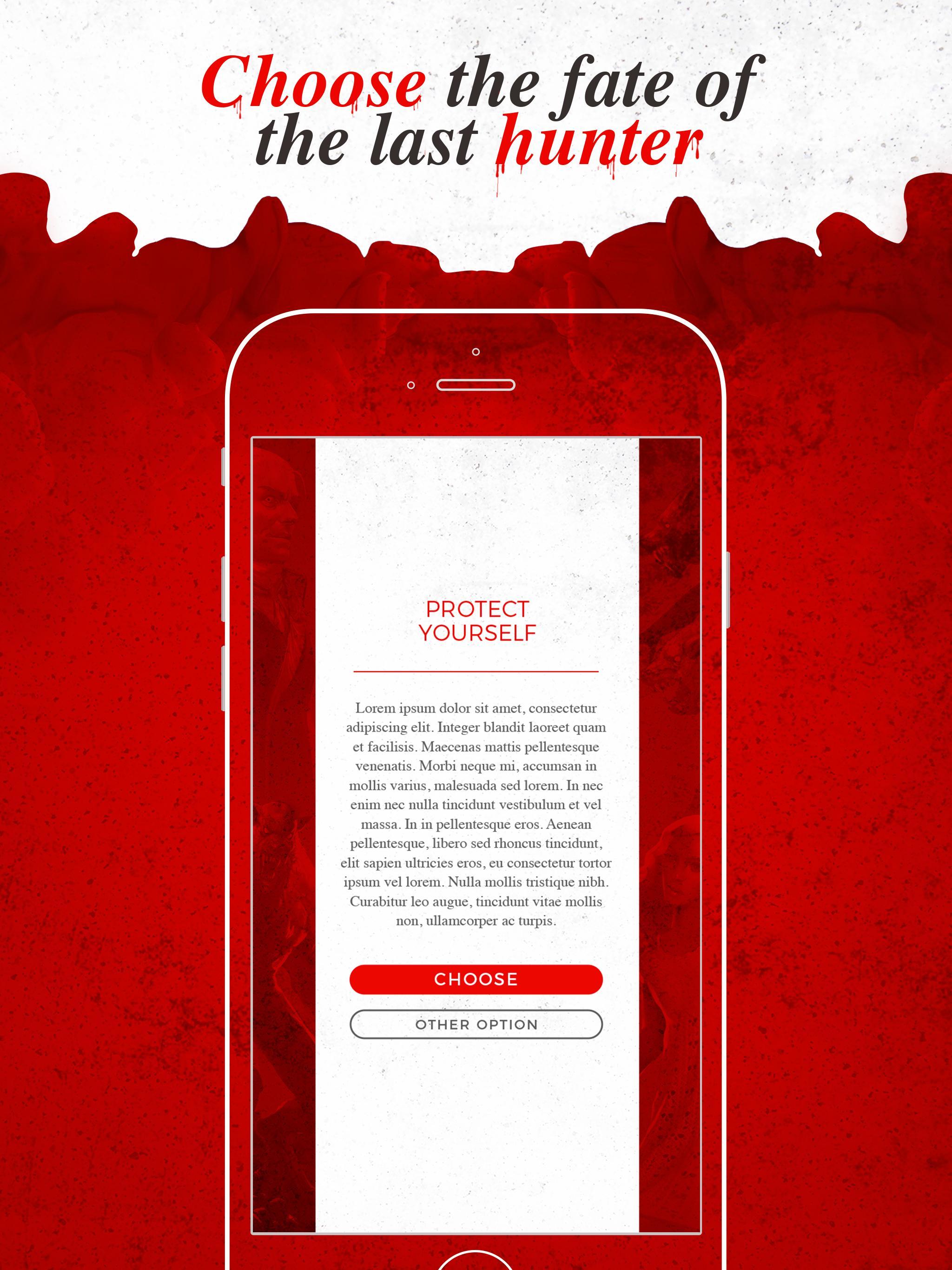 Buku jalur horor interaktif dengan 36 akhir yang berbeda. Memutuskan dan menjadi pemburu.