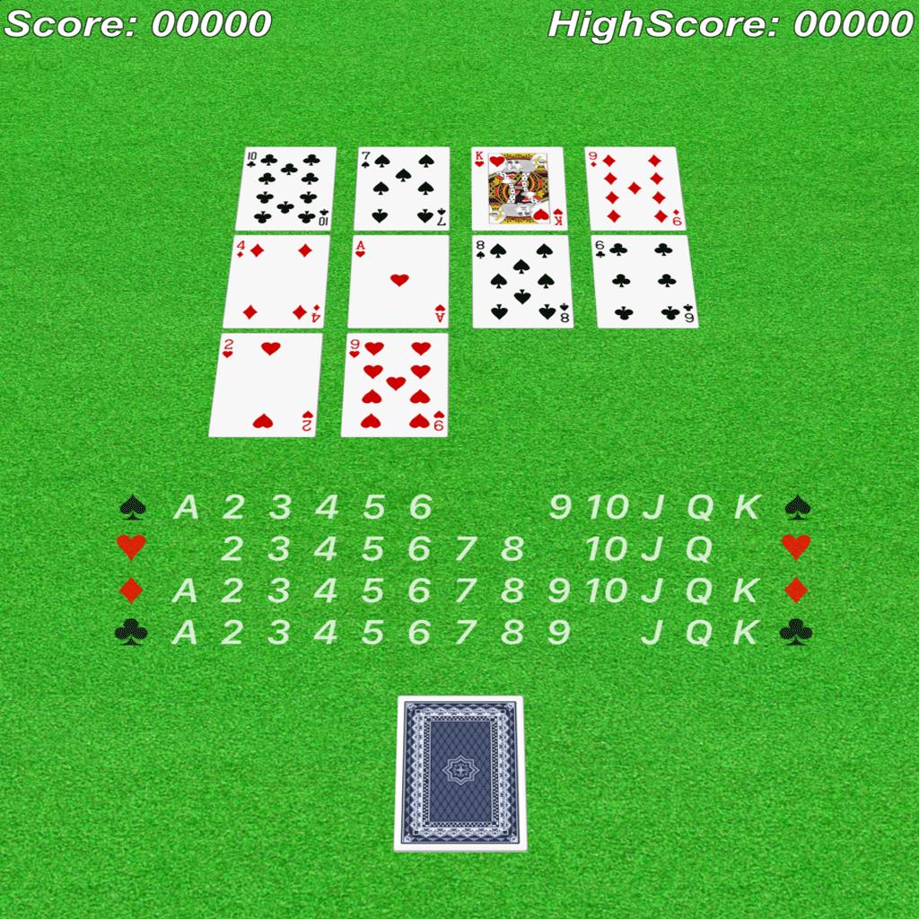 Atur empat kartu di lapangan dari 52 deck (tumpukan kartu).
