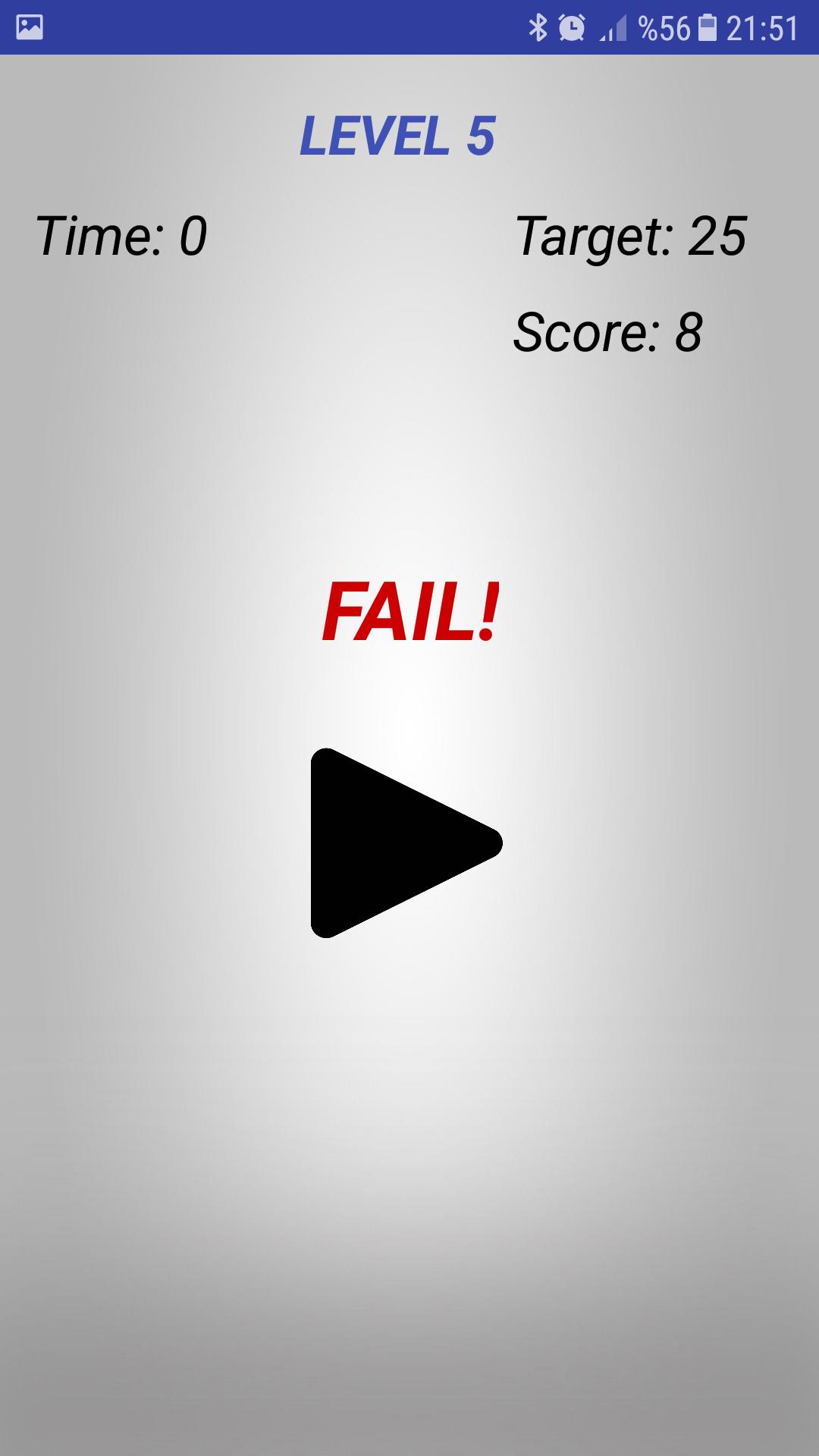 Saat Anda menyentuh tombol, skor Anda akan meningkat dan jika Anda mendapatkan skor yang cukup dalam waktu tertentu, Anda akan melewatkan level berikutnya.