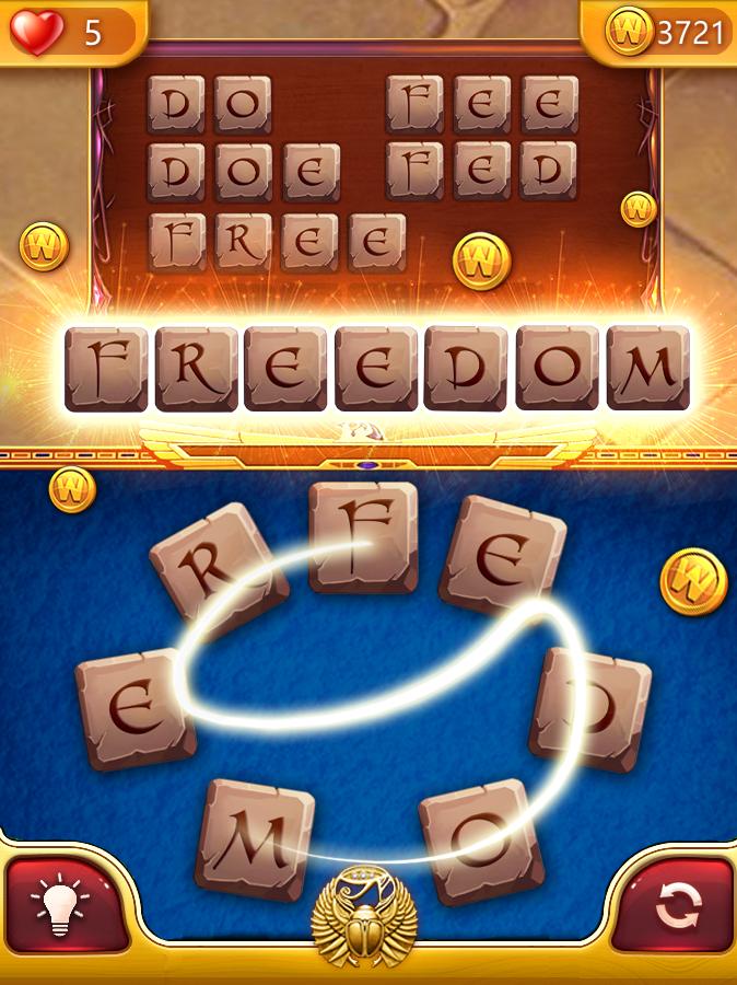 - Temukan kata sebanyak mungkin untuk membuka level dan mendapatkan koin bonus tambahan.