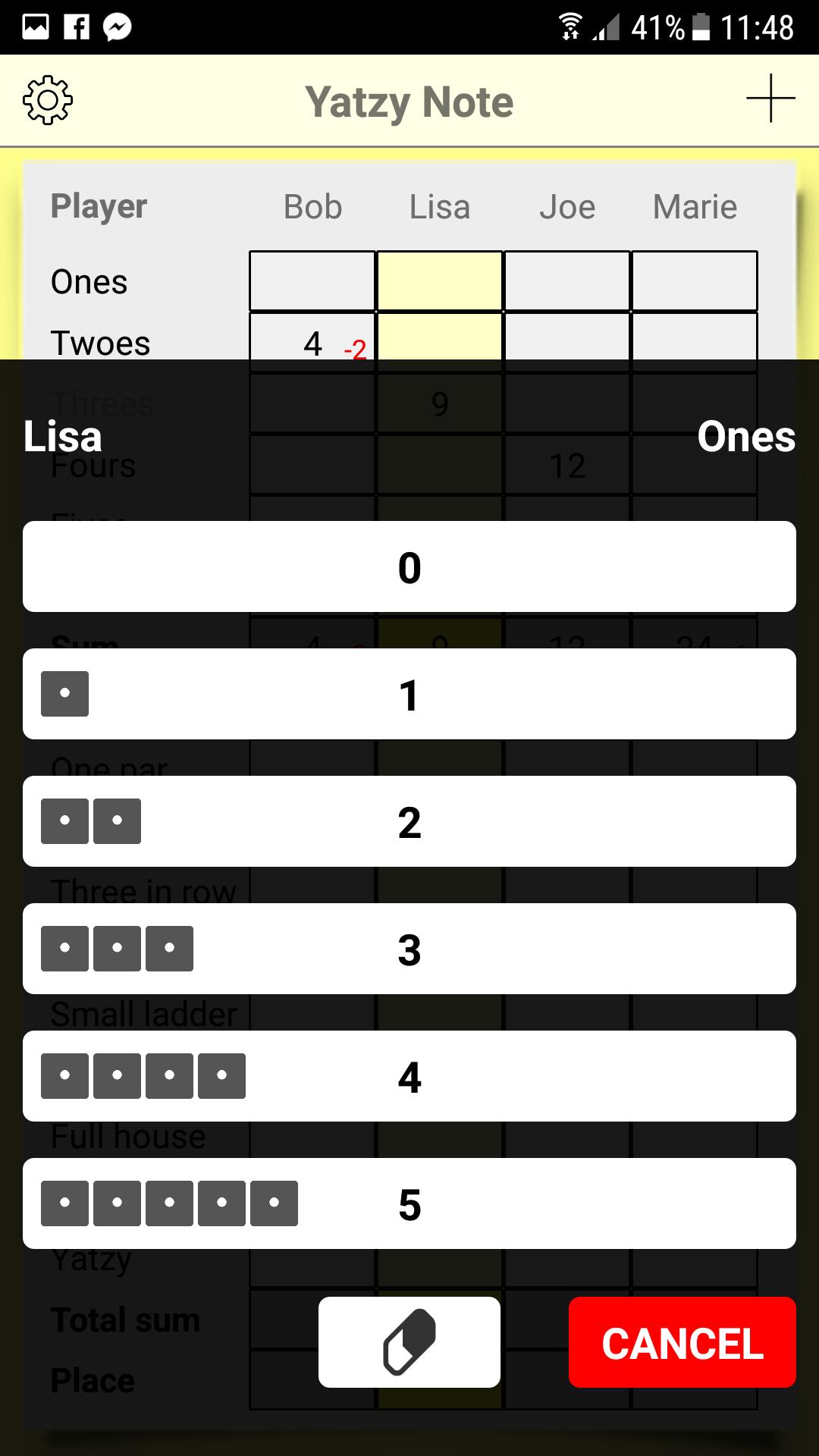 Apakah Anda suka bermain Yahtzee dengan dadu asli tetapi tidak suka menjumlahkan skor, maka Anda tidak boleh melihat lebih jauh. Yatzy Note adalah untuk Anda yang ingin bermain Yahtzee dengan dadu sungguhan dan mendapatkan jumlah secara otomatis.
