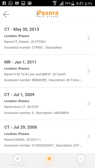 iPaxera is one of the fastest and easy to use PACS viewing applications specifically designed for viewing & navigating studies (DICOM images) with your Mobile, iPaxera was the first application to provide the ability to add studies (DICOM images) from your PC, DICOM CD or flash memory directly to Device through local synchronization with the USB cable like synchronizing your pictures and movies to your device (No need for Wifi/3G connection or a PACS Server).