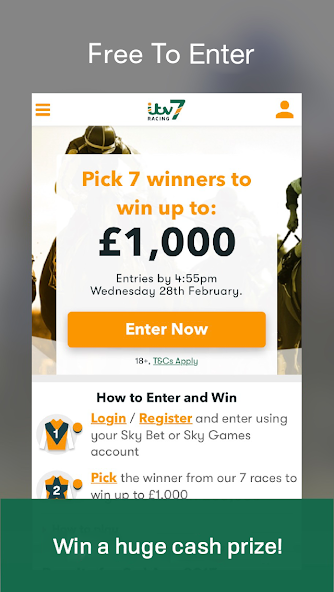 ITV7 is back! The free to enter competition returns with a new design but the same opportunity to win a huge cash prize for absolutely nothing if you can pick the 7 winners of our 7 chosen races. It's completely free to enter, simply register a free ITV7 account or log in with your existing Sky Games account.