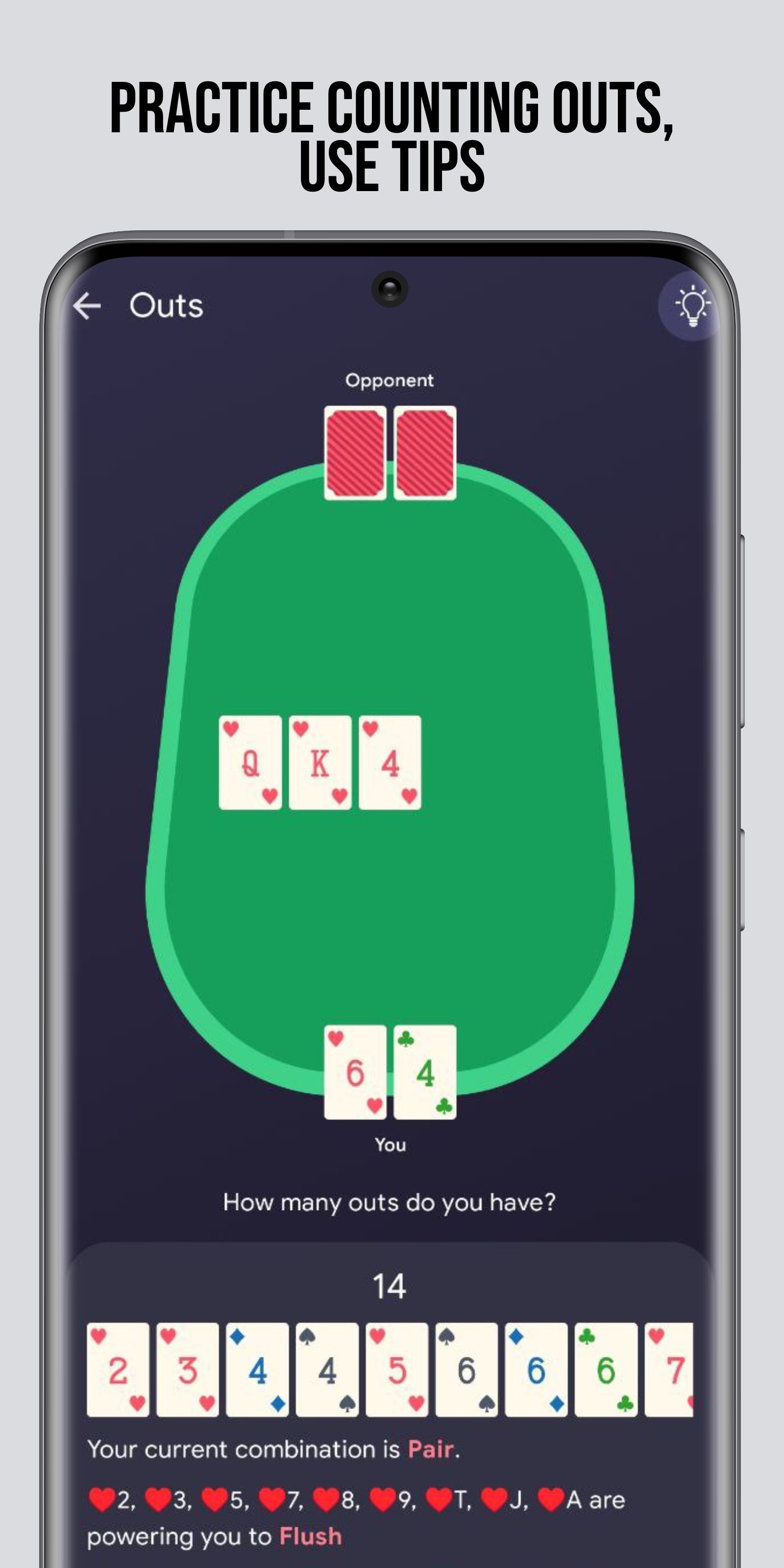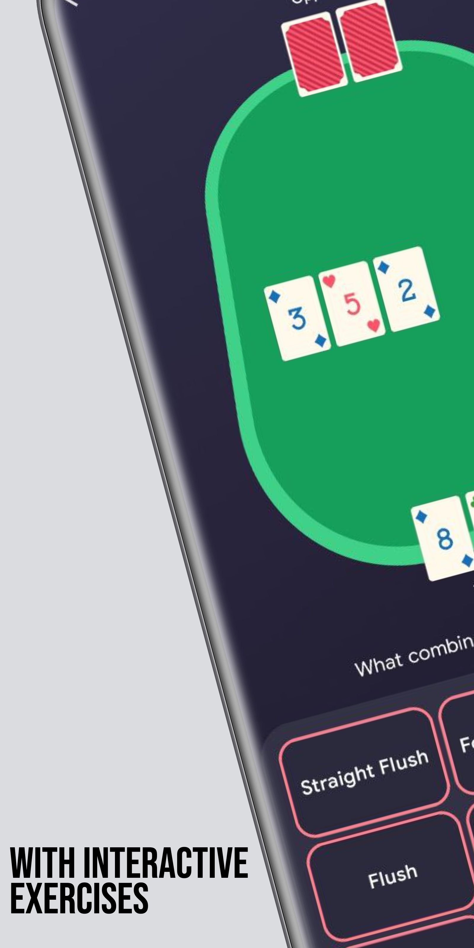 これを使用すると、ポーカーの基本をマスターし、特別に設計されたドリルでゲームを改善し、進捗状況を追跡することができます。私たちは最新のテクノロジーを使用して、訓練での出来事をできるだけ現実に近づけます。皆様からのフィードバックとアプリケーション開発へのプロのプレイヤーの直接の関与を考慮することで、エラーを最小限に抑え、アプリケーションをより便利なものにすることができます。