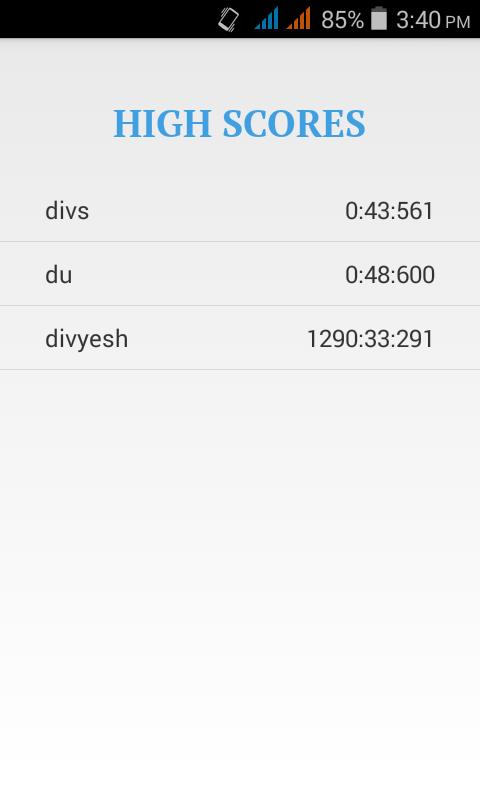 スコアは、名前と完了時間で構成されています。