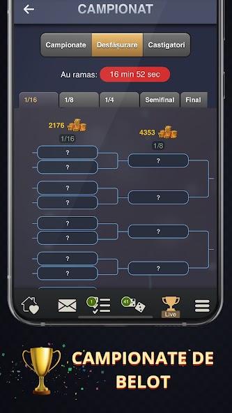 アプリケーションをダウンロードし、新しいアカウントを作成すると、すぐに2、3、または4人のテーブルでBelotを再生できます。ゲームのルールがまだわからない場合は、ルールセクションのアプリケーションでそれらを正しく見つけることができます。ゲームを獲得し、コインを集めると、モルドバ全土の最高のベロティストと競争するチャンピオンシップに参加できます。