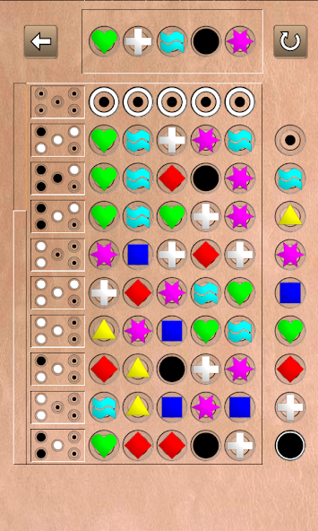 Code Breakerは、首謀者ゲームに似た古典的なコードブレイクゲームです。秘密のコードを破ることができますか。色付きのペグを連続して配置することで、秘密のコードを推測します。それぞれの推測の後、正しい場所にある各正しい色に1つの黒いペグと、間違った場所にある各正しい色に1つの白いペグが得られます。
