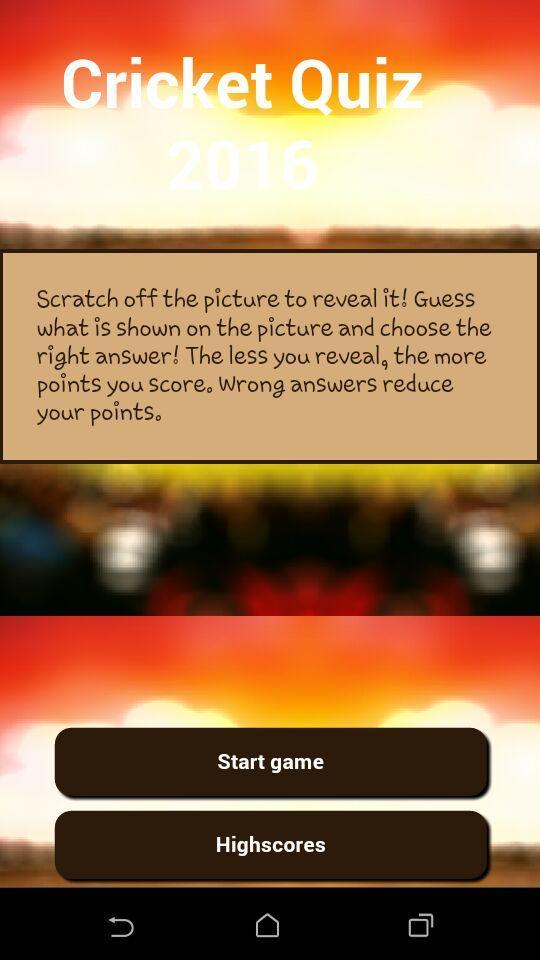 Cricket Quiz 2016 、クリケット選手に関するクリケットファンの知識をテストするためのスクラッチクイズです。クイズはすべてのプレイヤーに質問を提示し、プレイヤーにはクリケット選手のヒントと同じもののオプションが与えられます。写真はできるだけ最小限に掻き、クリケット選手の名前を明らかにする必要があります。