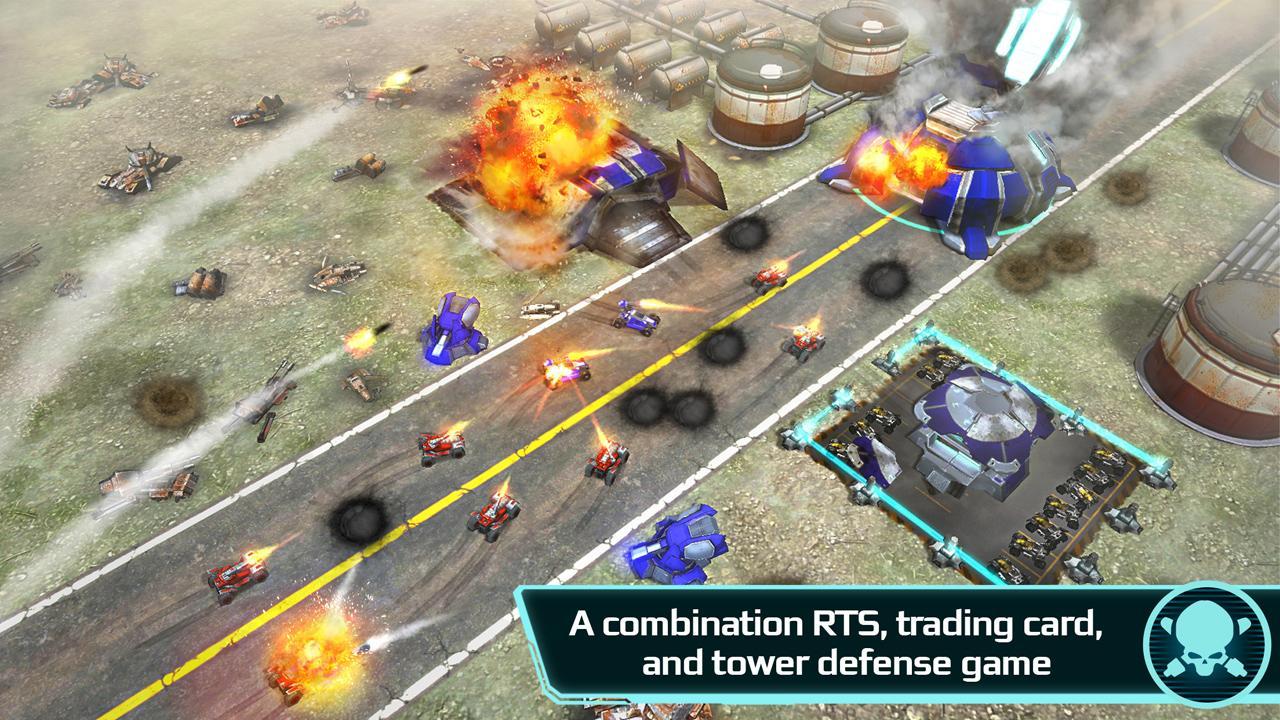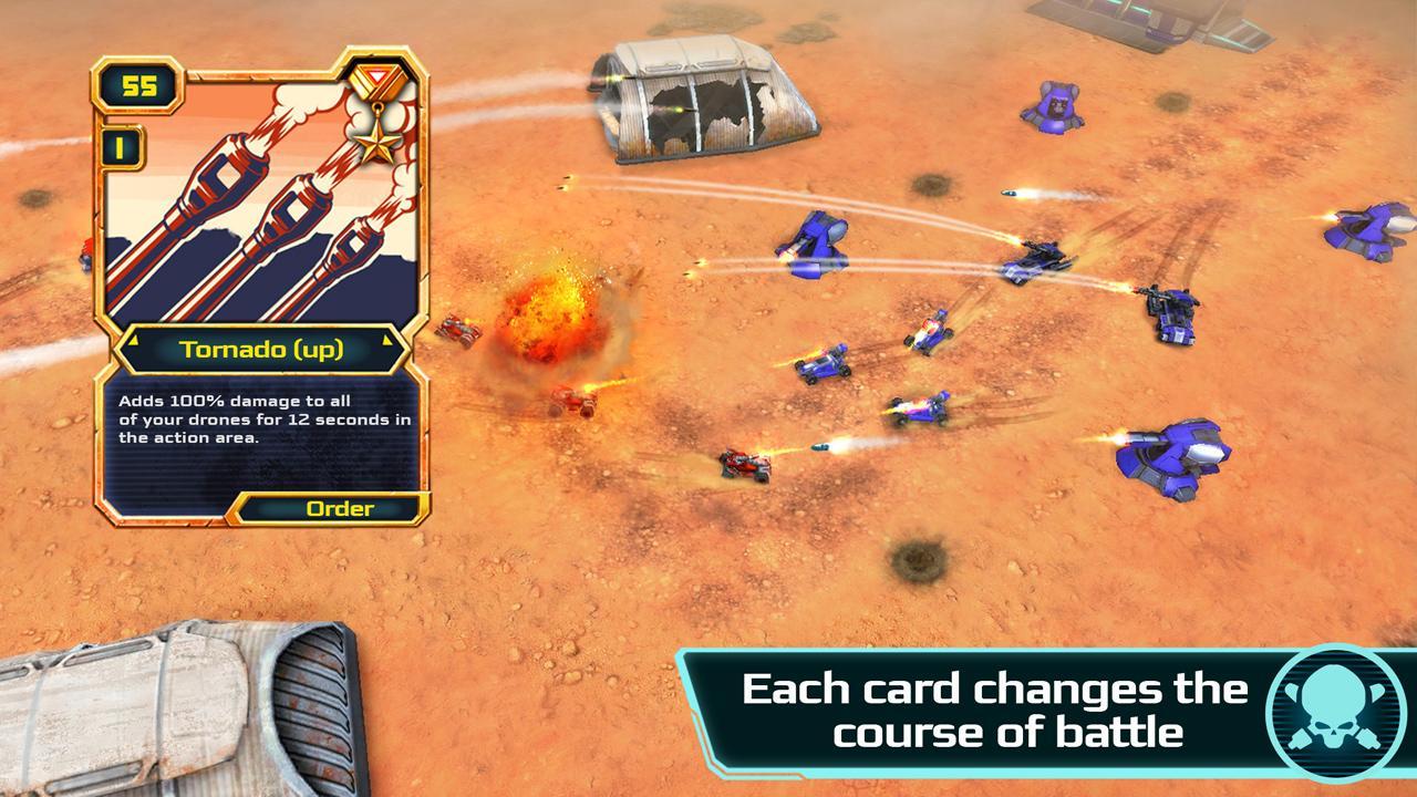 古い学校のRTSS、トレーディングカードゲームの戦術、およびMOBAゲームの重要な要素の古典的なゲームプレイを組み合わせたこのSF戦略ゲームのドローンタンクの軍隊。