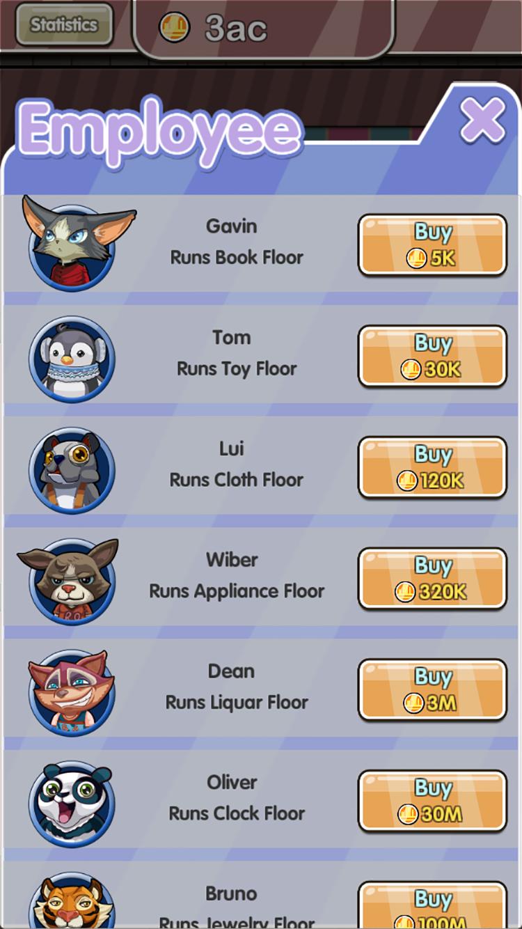 GreatMall自分自身をプレイすることさえできます!ビジネスを活気づけてから、マネージャーを雇って、あなたがいなくなっている間にお金を稼ぎ続けます。