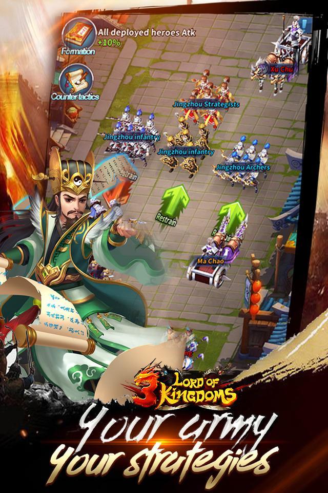 私の領主たち、あなたは伝説的な戦士:lu bu、cao caoがあなたのために中央平野全体を戦い、主張してほしいですか? Lord of 3 Kingdomsに参加して、それを実現させましょう。この世界では、戦略を作成し、独自の方法でフォーメーションを構築できます。ゲームのいくつかの機能は次のとおりです。