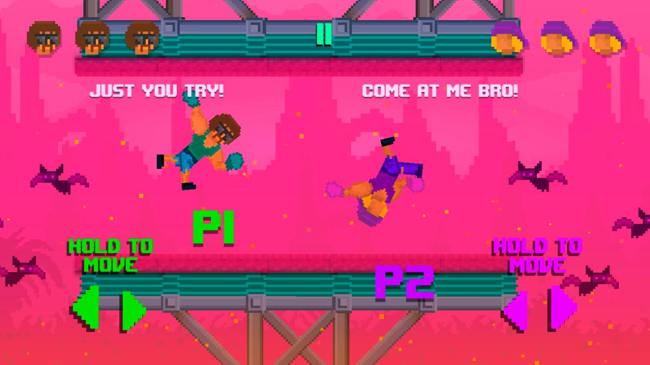 1対1のMMAバトルで友達を倒すか、強力なCPUプレーヤーに対してスキルをテストしてください!格闘、キック、そして敵をプラットフォームから、そして下の溶岩にパンチしてください!