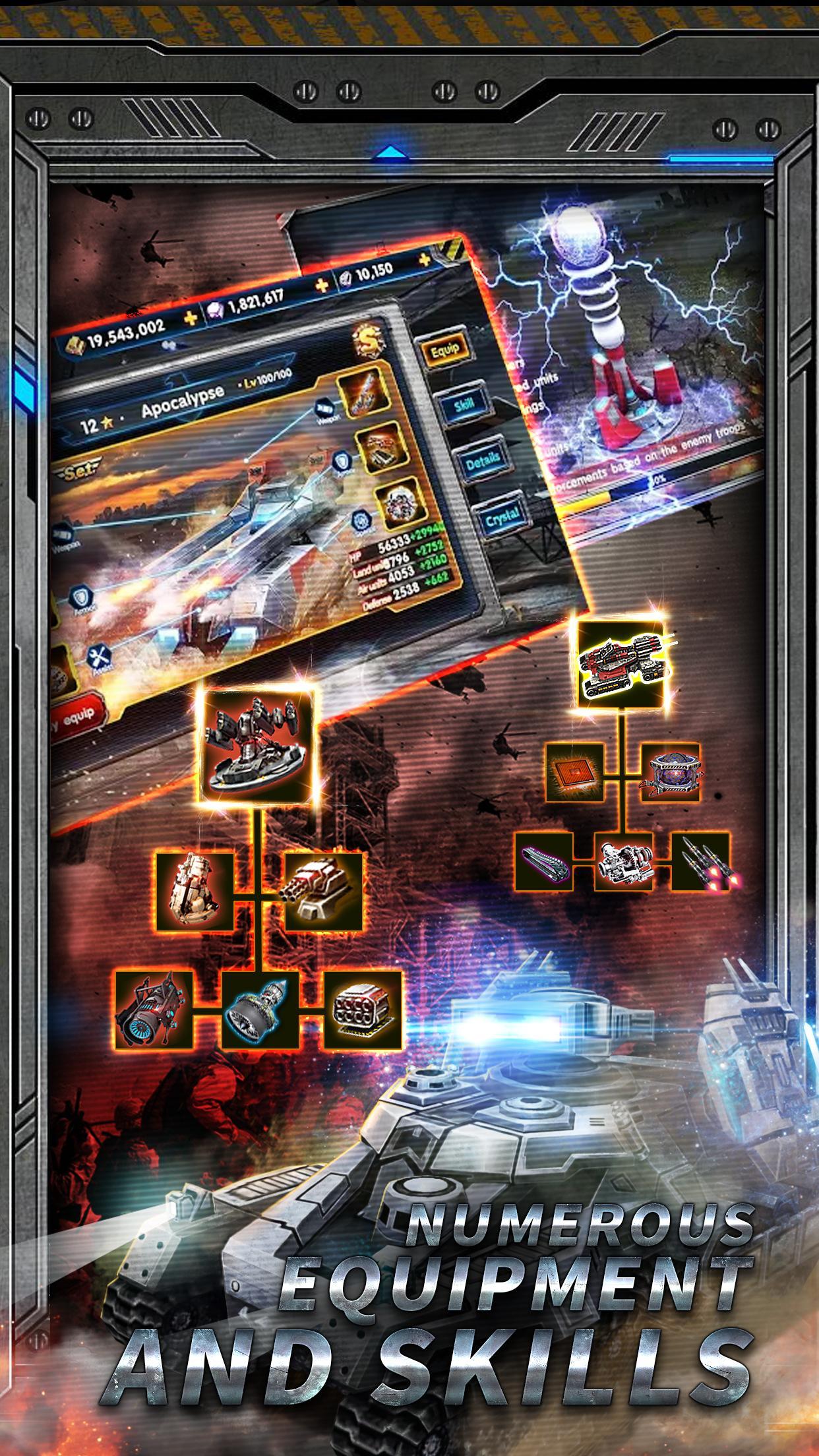- 敵に挑戦するために、戦車、ヘリコプター、その他多くの軍用車両を使用してください。 100を超える異なる研究でユニットをアップグレードしてください!