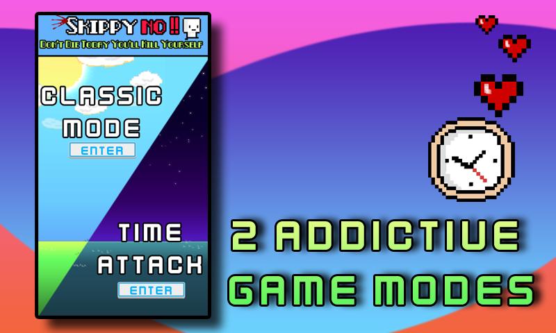 今日、スキッピーが自殺しないようにして、できるだけ高くジャンプしてください。彼が走っているときに画面をタップして、彼をジャンプさせ、プラットフォームに触れないでください。