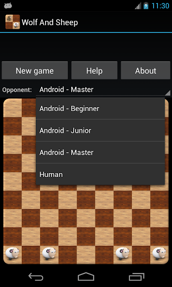 このゲームでは、人間は4匹の羊とアンドロイドまたは1つのオオカミで人間で遊んでいます。