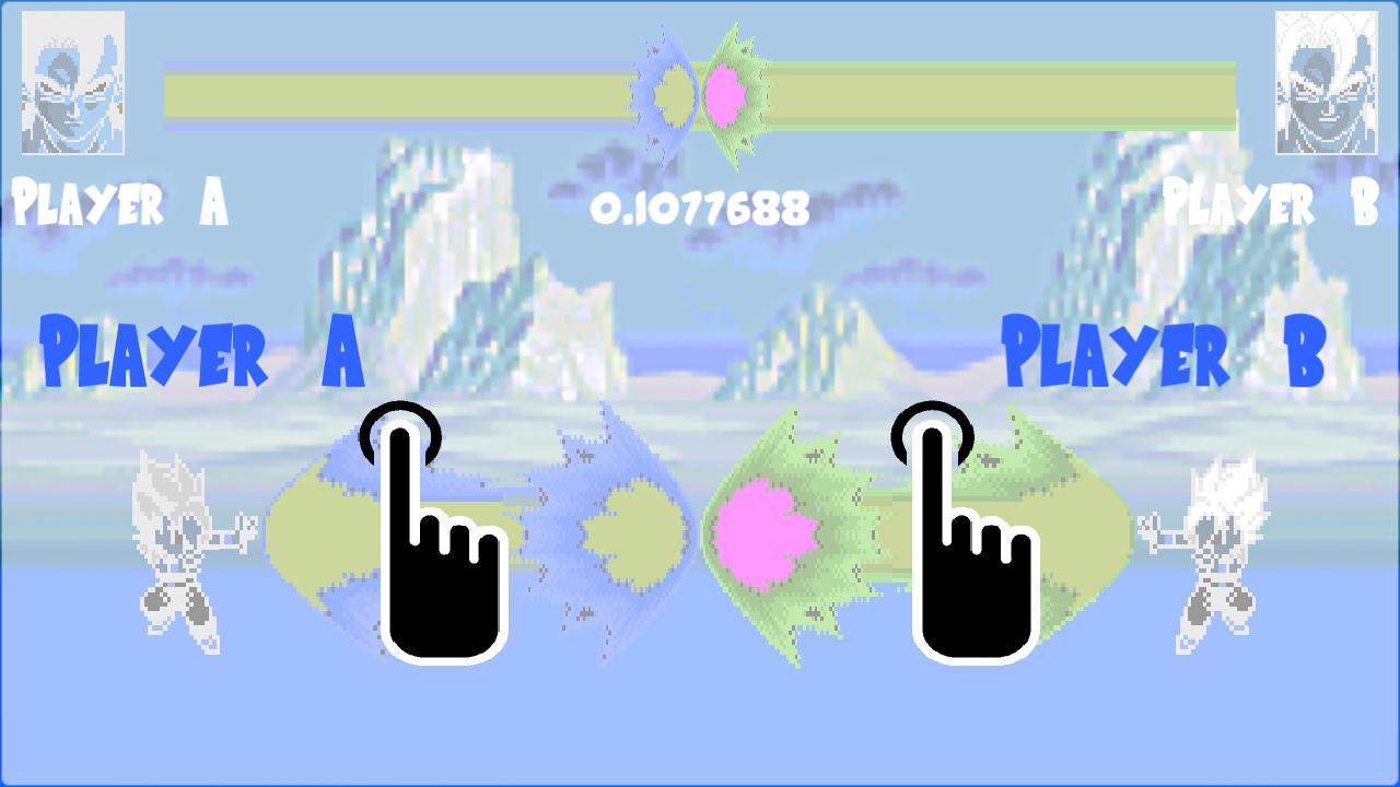 Challenge your best friend, lend him half screen of your mobile phone, start the game, press Play and ... Let the fight begin! Who press faster will win! Will you be the best Kamehameha shooter of your friends? Try it now!