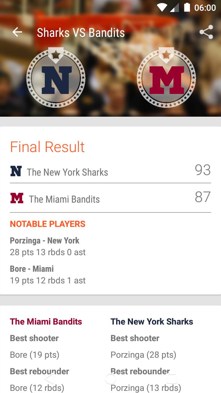 *스코어 보드, 순위 및 팬, 농구 스타 기자 및 플레이어의 반응을 따르십시오 .