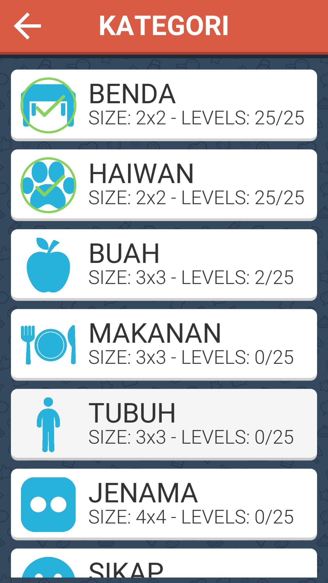 Bina Kata Malaysia 말레이어에서 단어를 찾는 장난감입니다. 크로스 워드 퍼즐이나 단어 두뇌 게임과 마찬가지로 플레이 카테고리를 기반으로 단어를 추측해야합니다.