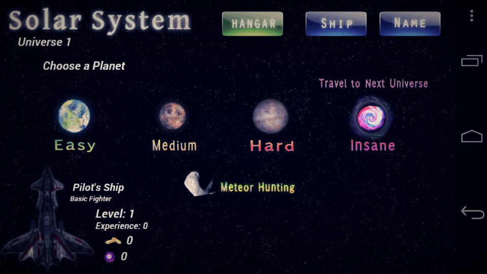 유성 또는 외계인을 사냥하여 자원을 얻으십시오.