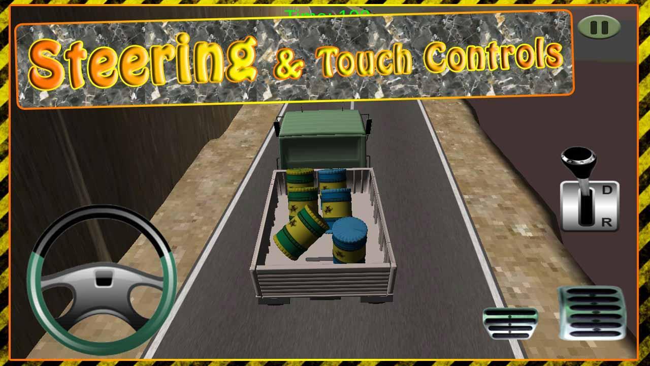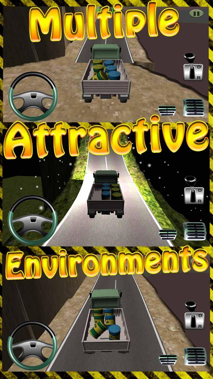 Unlocking new levels will make you an ultimate master driver. Become an extreme pro trucker by delivering various heavy duty goods like oil drums and barrels, wooden crates, woods and many more. Beware of dangerous sharp turns and deliver cargo safely. Extreme weather conditions with snowfalls and lighting could make your drive even more difficult.