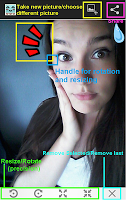 뒤로 버튼을 사용하여 사진에 다른 스티커를 선택하고 하단의 버튼을 사용하여 스티커를 크기를 조정/회전시킵니다. 오른쪽 상단 코너의 "공유"아이콘을 사용하여 그림을 공유하거나 공유 아이콘 옆의 "새 그림"버튼으로 편집 할 다른 그림을 선택하거나 휴대 전화의 메뉴 버튼을 사용하여 갤러리에 사진을 저장할 수 있습니다.