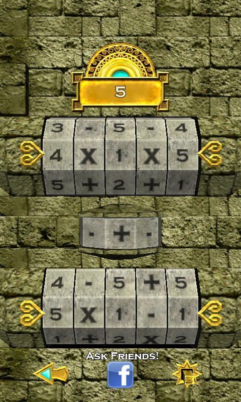 석재 휠을 오른쪽 방정식으로 돌려야하는 정상 모드를 재생할 수 있으며 원하는 숫자를 얻으려면 방정식이 이미 설정되어 있으며 5 개의 시리즈가 주어지고 휠을 올바른 6 번째 숫자로 돌려야하는 정답 및 시리즈 모드를 제공해야합니다.