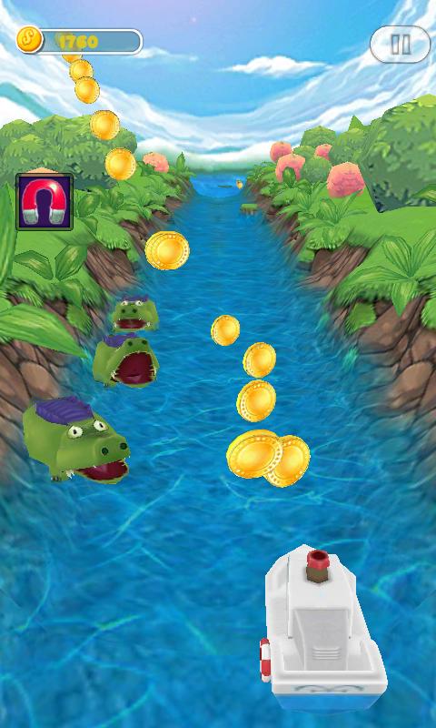 물이 튀는 물을 통해 운전, 미끄러짐 및 미끄러짐을, 보너스 동전을 모으고 상어 및 기타 위험한 놀라움을 피하십시오.