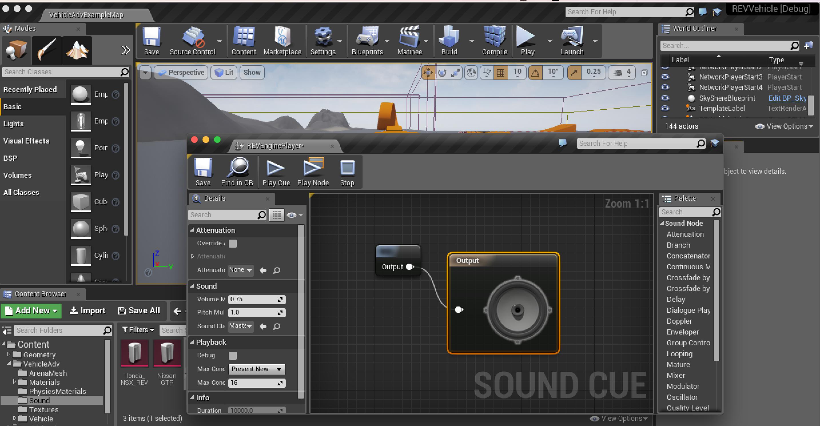 Unreal Engine 4의 고급 차량 템플릿이 사용되었고 엔진 오디오는 Rev 구현으로 대체되었습니다.
