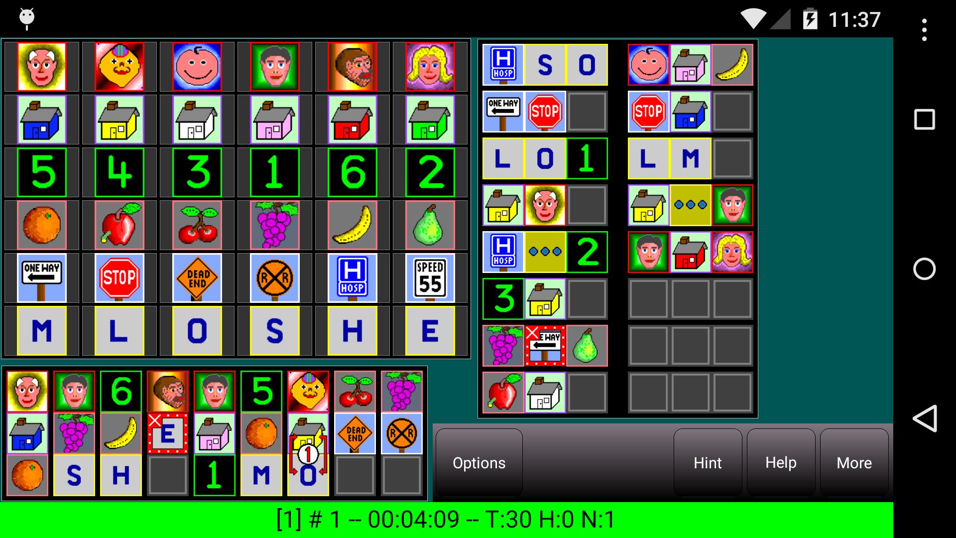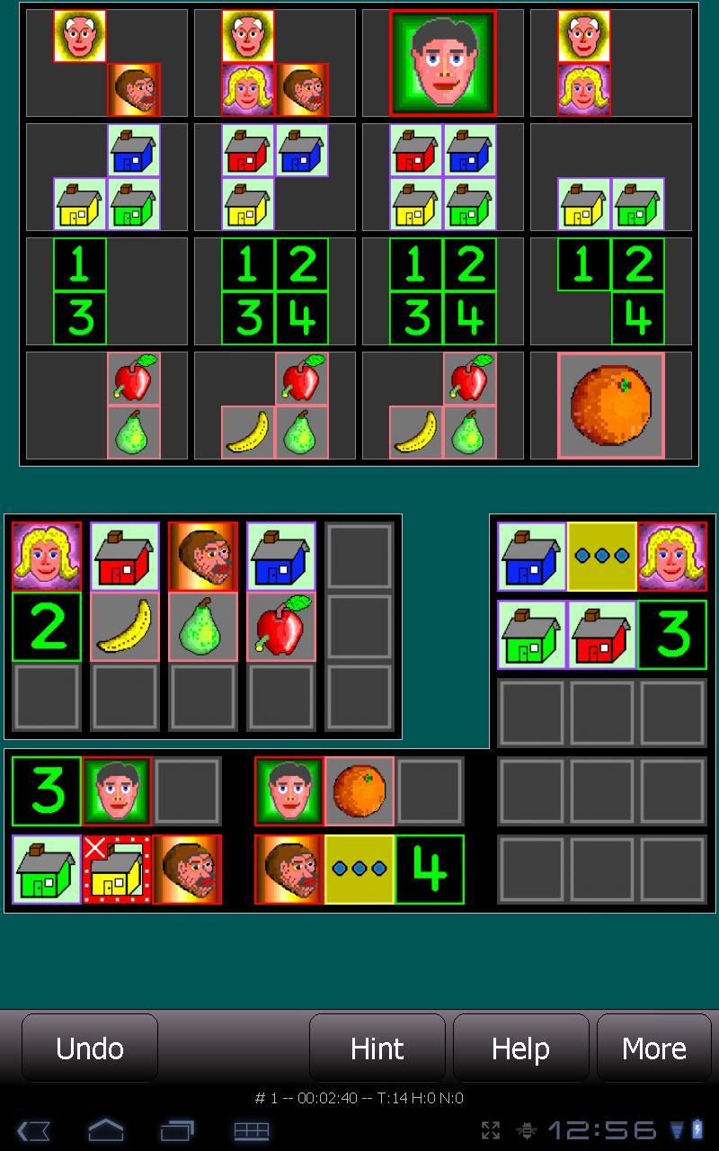 Sherlock은 컴퓨터 버전의 논리 퍼즐로, 재생 보드의 모든 이미지의 정확한 위치를 결정하는 데 도움이되는 일련의 단서가 있습니다. 퍼즐은 모두 4x4, 5x5 또는 6x6입니다. 연주 보드의 각 행에는 동일한 유형의 이미지 (얼굴, 주택, 숫자, 과일, 거리 표지판, 문자 등)가 포함되어 있습니다. 게임은 각 행에있는 항목의 위치를 스크램블하고 (위치를 보여주지 않으면 서) 다른 이미지의 위치 관계를 설명하는 일련의 그래픽 단서 세트를 제공합니다. 당신은 단서를 사용하여 모든 이미지가 어디에 있는지 알기 전까지는 일이 될 수없는 곳 (그리고 어디에 있어야하는지)를 추론합니다.