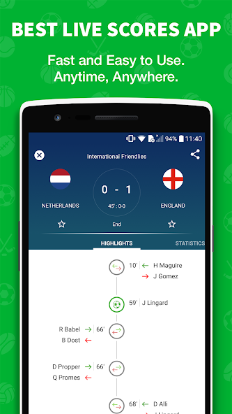 - 다른 Livescore 앱에 비해 가장 빠른 Livescore 서비스