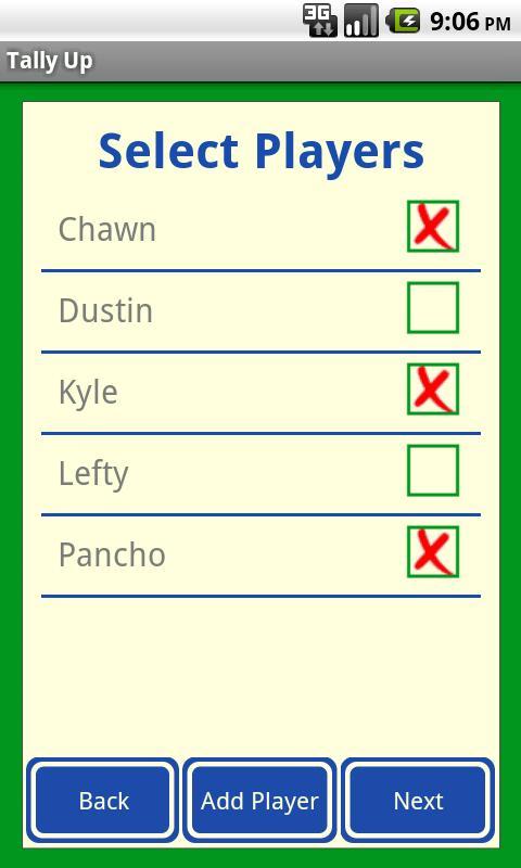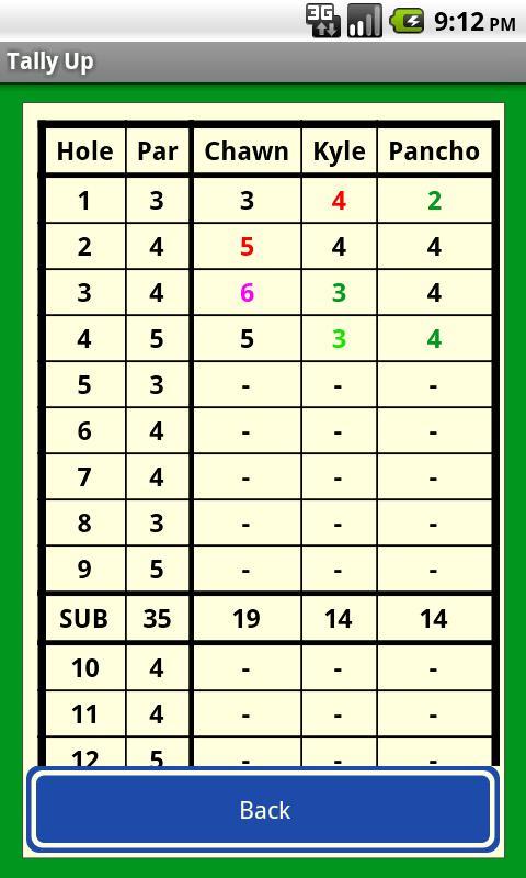 Tally Up 에는 라운드가 순조롭게 진행되는 간단한 인터페이스가 있습니다. 빠른 향후 액세스를 위해 사용자의 플레이어, 코스 및 게임을 저장합니다.