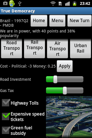 현실적인 정치 시뮬레이션 게임에서 당신의 나라를지도하십시오! 귀하는 건강 관리 증가에서 과세 감소에 이르기까지 권력에 대해 원하는 모든 종류의 정부 조치를 자유롭게 할 수 있지만 각 조치는 유권자와 정부 부채에 대한 귀하의 생각에 영향을 미치기 때문에주의하십시오. 선거에 도달 할 때까지 몇 년이 지나면 국가를 안내하십시오. 선거에서 승리하면 권력을 유지합니다. 당신이 그것을 잃으면, 다른 정당은 정부를 취할 것이지만, 게임은 끝나지 않습니다! 여당의 경제 우울증이나 실수가 당신을 권력으로 되돌릴 때까지 기다릴 수 있습니다! 2015 년 5 월 1.0.11-5의 변경 :