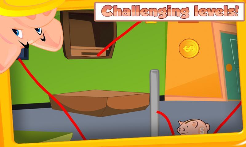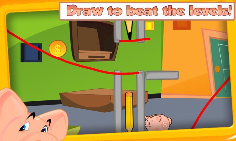 동전을 돼지 뱅크에 굴리기 위해 선을 그립니다.