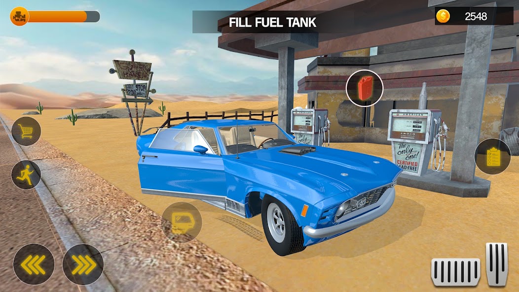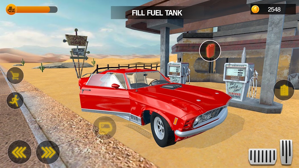 Fill fuel tank from the gas station junkyard long road trip animal hunting games.