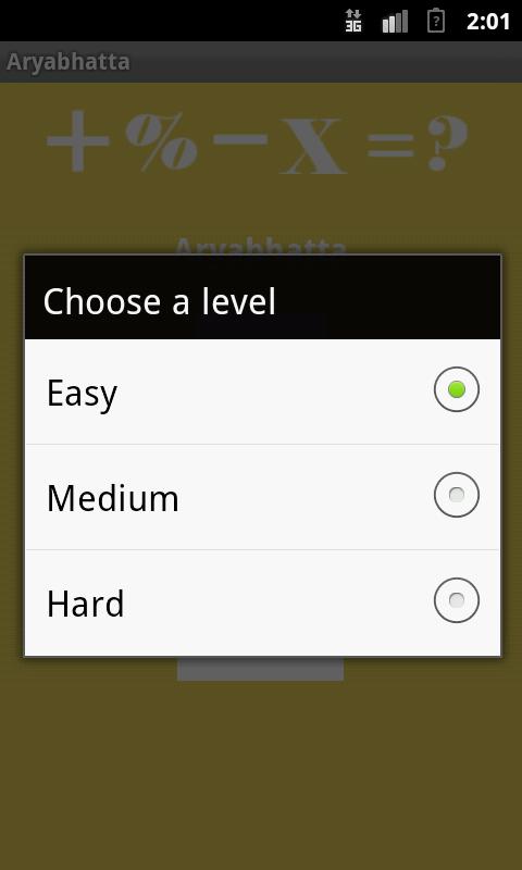 Choose Easy, Medium or Hard level to begin.