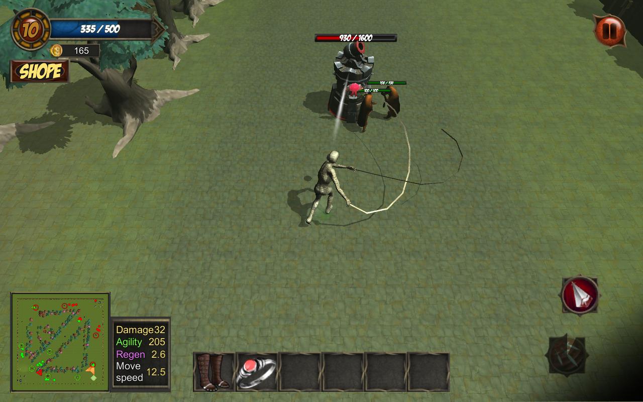 You slept for a long time in your quiet cozy pyramid. But your home village in danger and old priest raised you from the dead. Now you mummy but honor and valor in your heart will never die. Defend your city from terrible deadly horde. Their leader lava monster with burning head is very powerful. The new body will give you new strength and abilities. Use your bandage to hit enemies. Avoid stun traps and destroy enemy crystal.