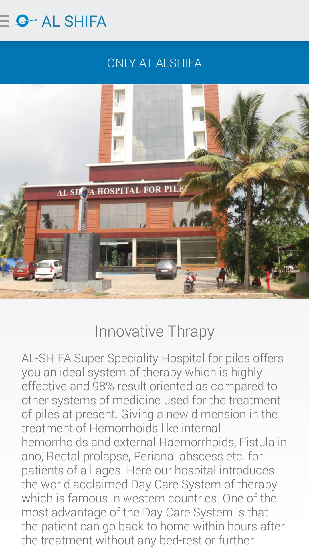 The Al SHIFA HOSPITAL proctology center at Ernakulam is the first and most comprehensive proctology center in the world. Our surgeons and nurses at Al Shifa is to provide truly multidisciplinary care for patients. All other services and supports our families need are available here under one roof.
