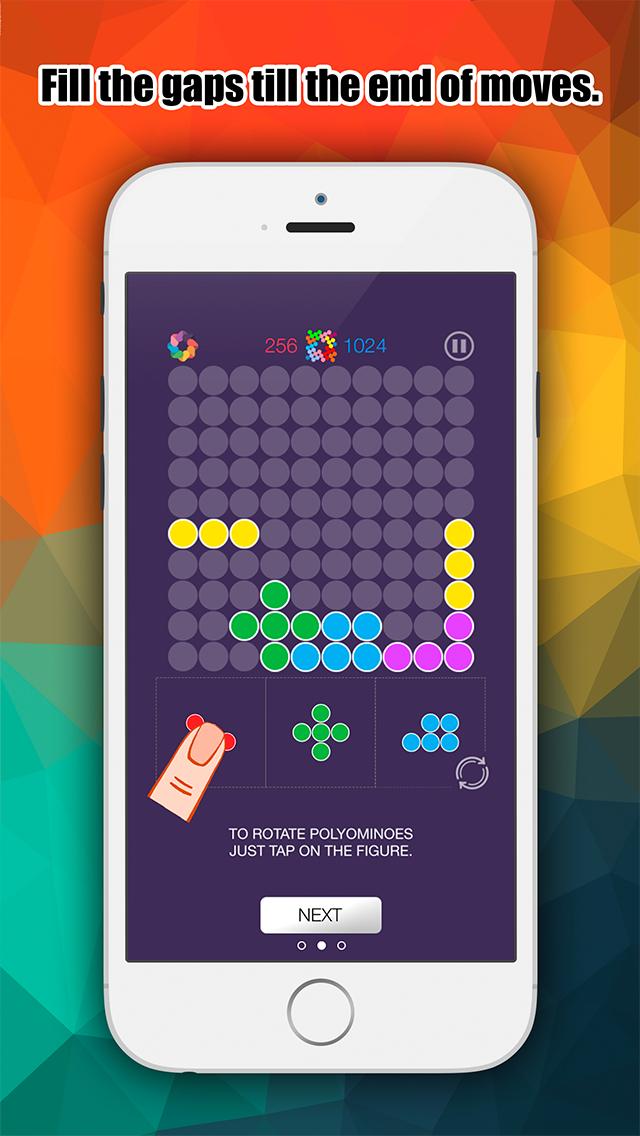 Manipulate Polyominoes to form lines without gaps. To rotate Polyominoes just tap on the figure.
