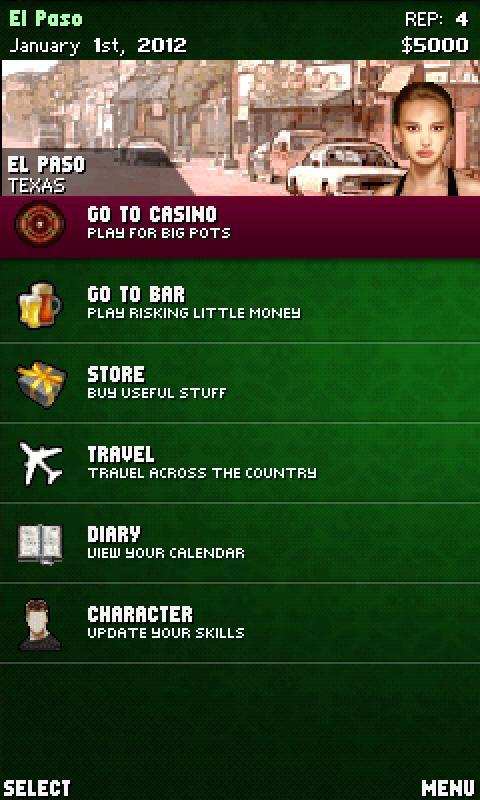 Travel across America seeking the most profitable tables and play with the best poker players in the country's major cities. When you have enough money and reputation you can access the Bureau of the Million Dollar in Las Vegas, a game with prizes and opponents who never imagined.