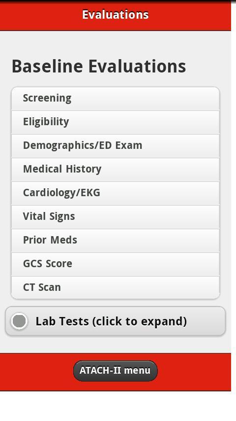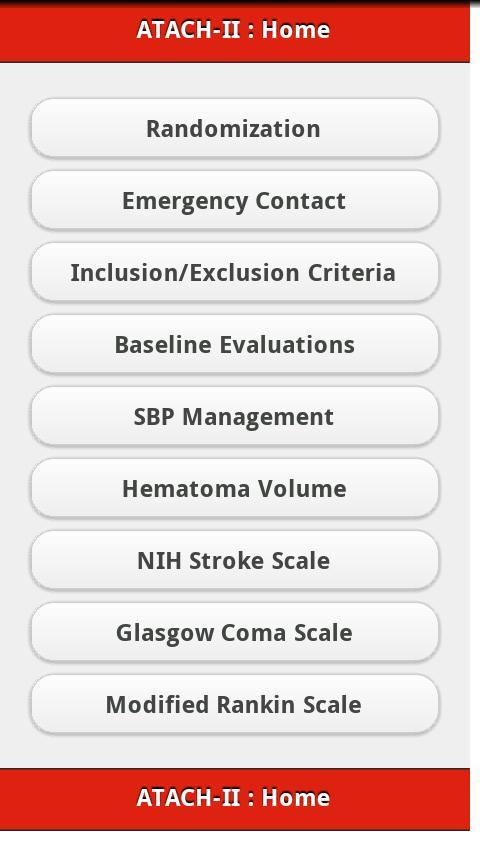 Esse aplicativo móvel foi criado para facilitar a inscrição no ensaio clínico ATACH-II. ATACH-II é um ensaio clínico de cinco anos projetado para determinar a eficácia do tratamento anti-hipertensivo intensivo e intensivo em pacientes com AVC.