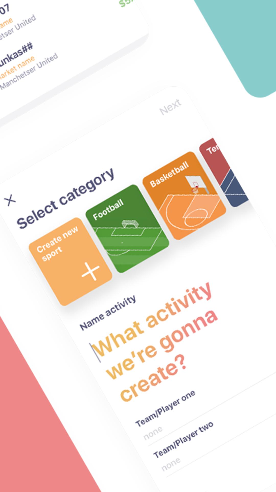 ● Defina sua aposta escolhendo esportes padrão ou crie qualquer esporte personalizado que desejar.