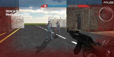 Cops Vs Criminals Base Ataque Nível 1: Há um total de 15 atacantes, mas apenas três aparecem por vez. O jogador faz movimentos inteligentes para matar os rivais. Quando um dos inimigos é morto, outro é criado e inicia o fogo. Se o inimigo for atingido na testa, 15 pontos forem adicionados. Se o inimigo for atingido no corpo, 10 pontos são adicionados.