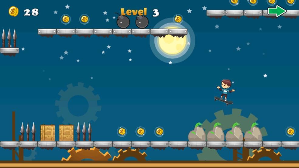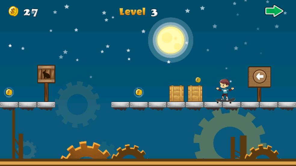 O Kid Skater é um jogo de skate, então você precisa controlar o garoto para coletar moedas e escapar dos inimigos.