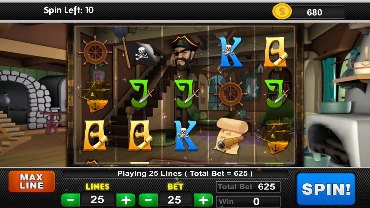 Neste jogo você joga como um pirata que adora jogar na máquina caça-níqueis, para isso você precisa atualizar o nível do pirata, cada vez que você bebe e come a barra do nível do pirata fica cheia, e primeiro você pode jogar o jogo.