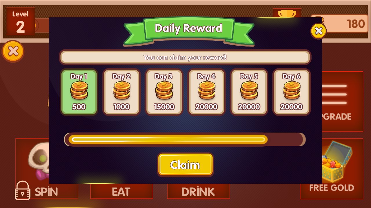 Você pode atualizar o efeito de clique para que o pirata termine de comer e beber mais rápido para que ele possa jogar e ganhar tesouros e saques poderosos nos jogos de caça-níqueis. Há GRANDES vitórias todos os dias e tudo é divertido e gratuito.