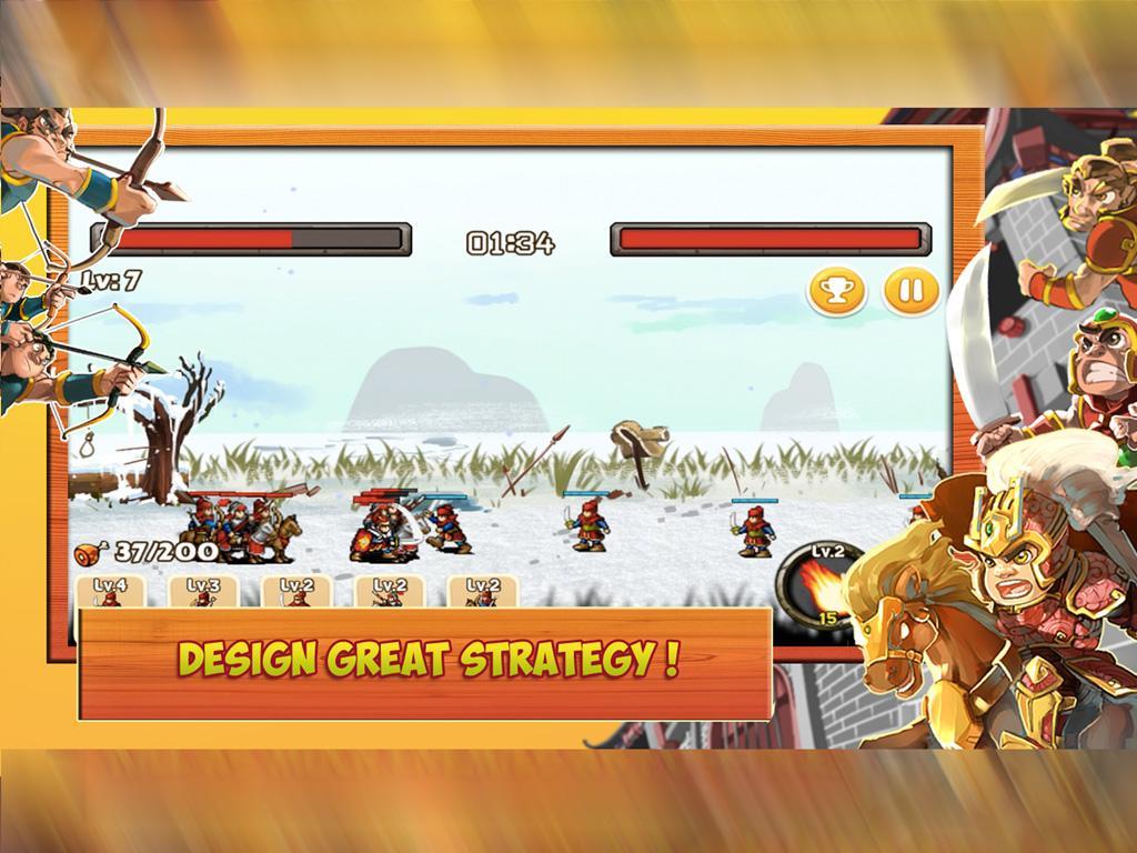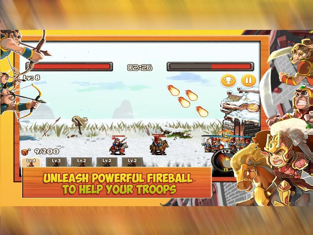 Recruit Legendary Generals from the Three Kingdoms era to lead your army! Use their mighty skills and plow your road to victory!